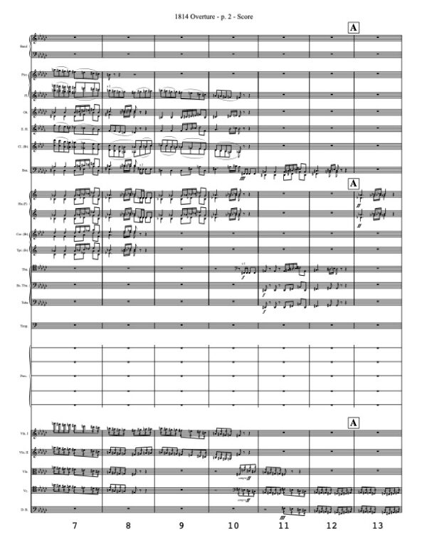 The 1814 Overture has been created in an attempt to create an appropriate alternative to performances of the 1812 Overture on July 4th concerts. A number of people, the arranger included, have objected to the celebration of our Independence Day being accompanied by fragments of the French national anthem and the climax, with cannons and fireworks, to the strains of “God Save the Czar”. Since the United States was fighting a war with the British at the same time, it seemed logical to make the necessary adjustments to “Americanize”Tschaikovsky’s stirring composition.